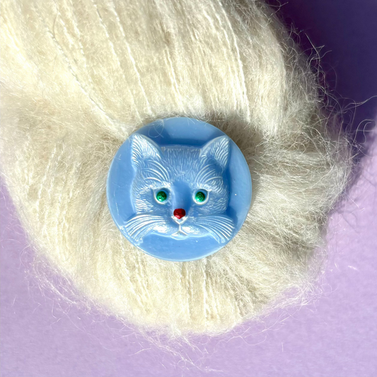 26mm - KATTE knap - Vintage blå, Sølv