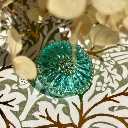 18mm - DAHLIA knap - Aquagrøn, Grøn similisten, guld