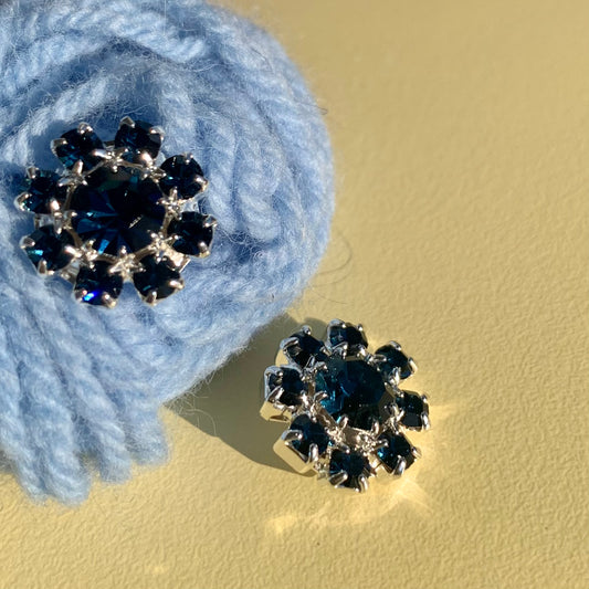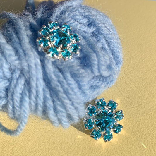 14mm - HOLLY similiknap - Skyblå krystal, Sølv