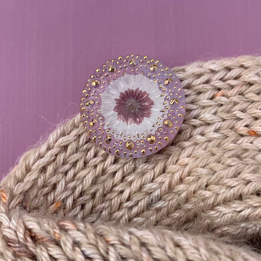 26mm - KORNBLOMST knap -lavendel lilla, hvid, guld