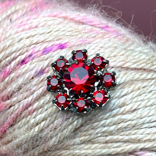 14mm - HOLLY knap - Rød, Oxideret sølv
