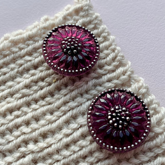 18mm - SOLSIKKE knap - Mørk LIlla, sølv