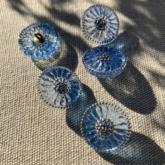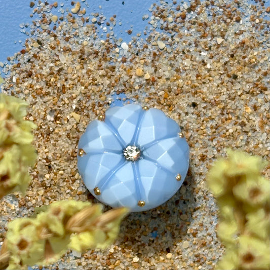 18mm - DAHLIA knap - Himmel blå, Guld, klar sten