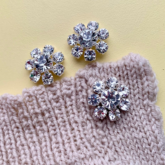 22mm - DAHLIA knap - Sort, sølv, klar sten