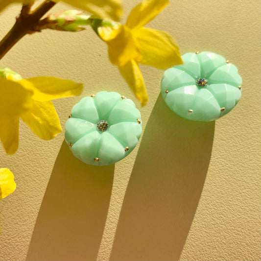 22mm - DAHLIA knap - Aqua, Guld, Klar similisten