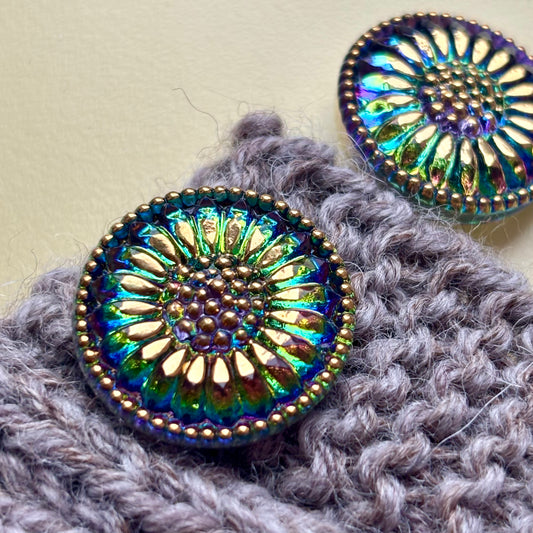 22mm - SOLSIKKE knap - Lavendel, multi, sølv