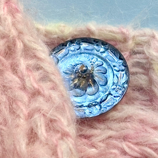 26mm - CAT button - Vintage blue, silver