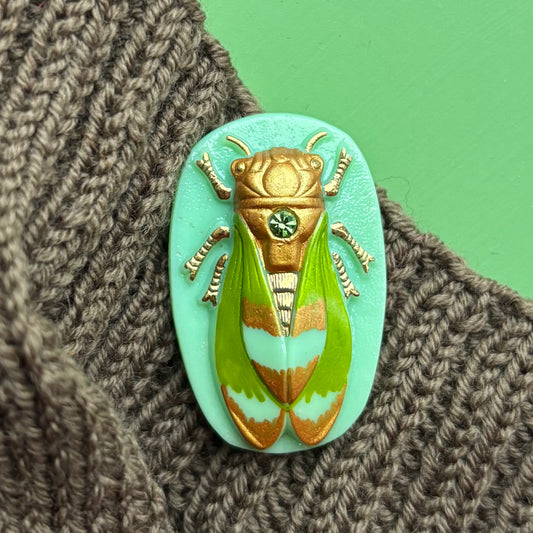 Sold out40x25mm - CIKADE knap - Grøn, Guld