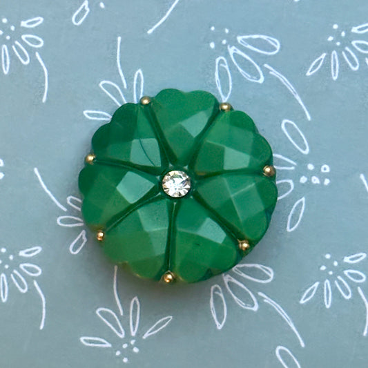26mm - DAHLIA button - Forest green, Clear stone