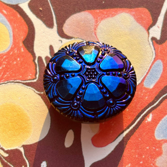 22mm - DAHLIA button - Midtnight blue, clear rhinestone